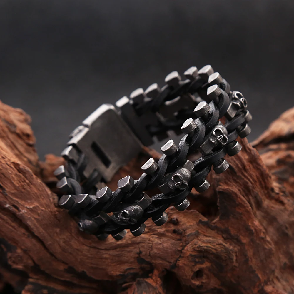 Chain Link Skull Biker Bracelet – Industrial Gear Style Jewelry