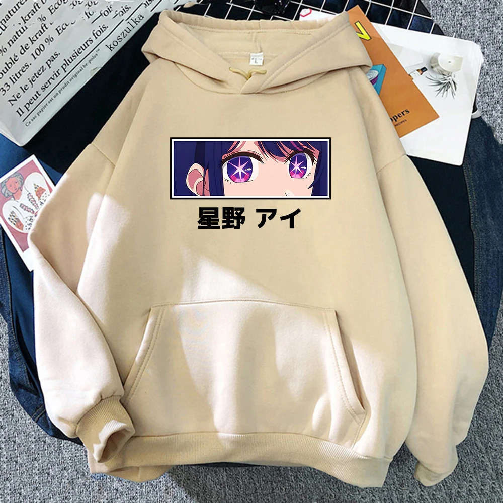 Oshi no Ko Eye Panel Hoodie – Beige Anime Pullover Featuring Ai, Ruby & Aqua Hoshino
